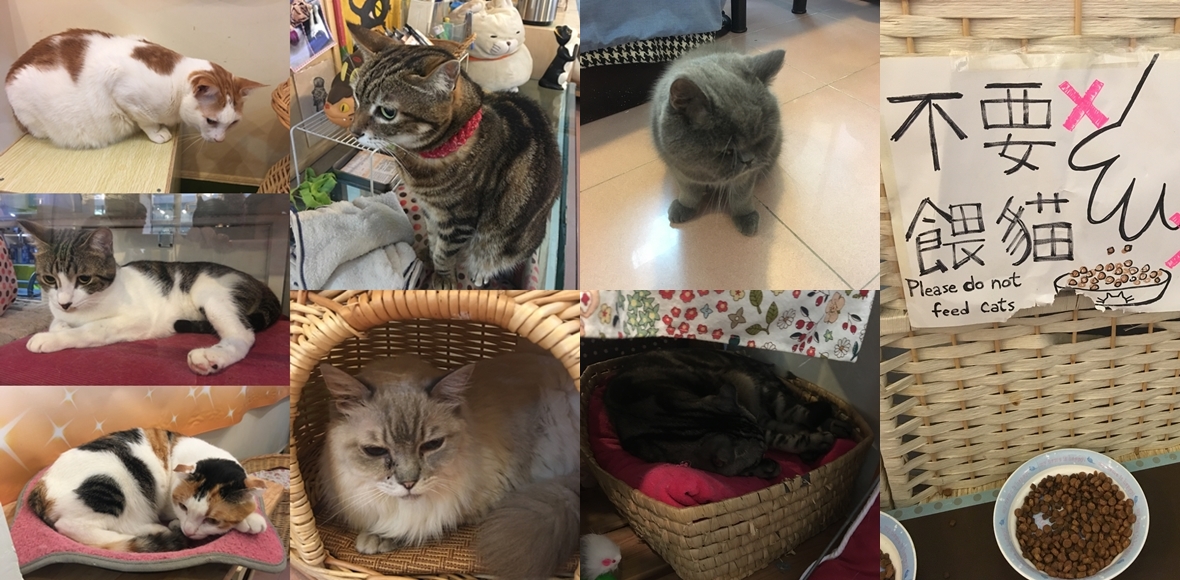 「阿貓地攤」是香港第一間以貓做主題的cafe。我一向都知道香港有很多用貓做主題的cafe,但因為這家比較容易找,就去了這裡了。第一次去「阿貓地攤」人已經很多,所以最好去前要訂位,又可以坐到好的位置,近窗口的梳化位就最容易接觸到喵星人的地方,因為喵星人很喜歡躺在梳化上哦!!!還有機會與牠們拍照吖!!!